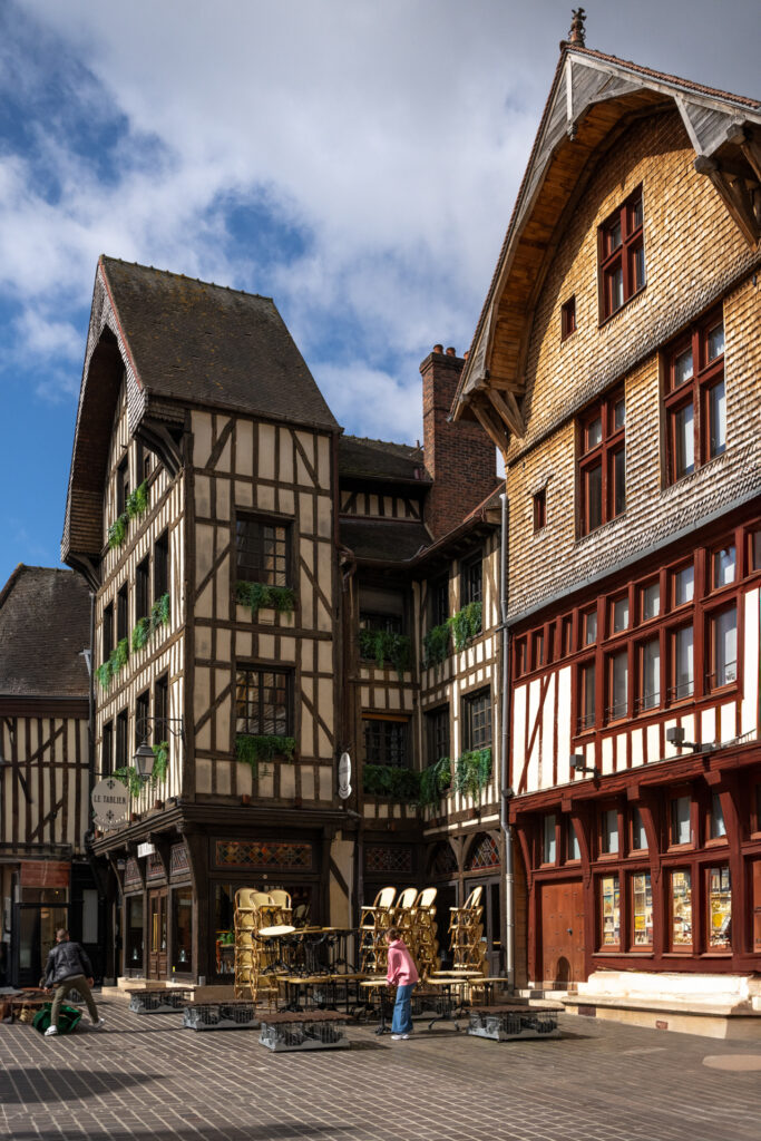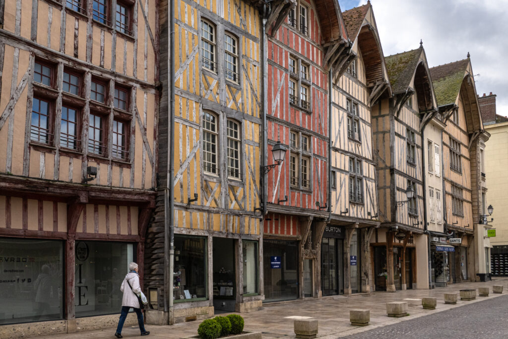 Troyes est une ville française de la région Grand Est. Sa vieille ville médiévale est sillonné bordées de maisons à colombages colorées, construites pour la plupart au XVIe siècle. La ville est agrémentée de plusieurs églises gothiques aux remarquables vitraux, notamment la cathédrale de Troyes, l'église Sainte-Madeleine et la basilique Saint-Urbain