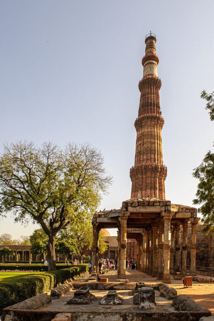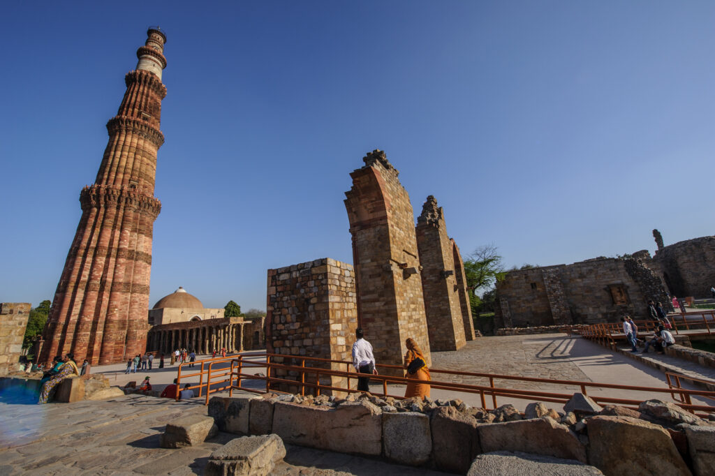 Le Qutb Minar, également orthographié Qutub Minar et Qutab Minar, est un minaret et une tour de la victoire, construit pendant le sultanat de Delhi, et comprenant le complexe de Qutb, un site du patrimoine mondial de l’UNESCO à Mehrauli, au sud de Delhi, en Inde. Il a été principalement construit entre 1199 et 1220, contient 399 marches et est l’un des sites patrimoniaux les plus fréquentés de la ville.Après avoir vaincu Prithviraj Chauhan, le dernier dirigeant hindou de Delhi avant la conquête ghurienne de la région, Qutab-ud-din Aibak a initié la construction de la tour de la victoire, mais n’a réussi qu’à terminer le premier niveau. C’était pour marquer le début de la domination islamique dans la région. Les dynasties successives du sultanat de Delhi ont continué la construction, et, en 1368, Firuz Shah Tughlaq a reconstruit les parties supérieures et ajouté une coupole.