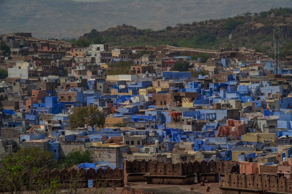 Fondée en 1459 par Rao Jodha (en), chef du clan des Rathore (hindi: राठौड), Jodhpur est communément surnommée la « ville bleue » car la plupart des maisons de la vieille ville sont peintes de cette couleur. Le bleu indiquait que ces maisons appartenaient à des membres de la caste des brahmanes. Le bleu offre aussi l'avantage de protéger de la chaleur et de repousser les moustiques. Jodhpur est aussi appelée « la cité du soleil » en raison de l'exceptionnel ensoleillement dont elle jouit tout au long de l'année.