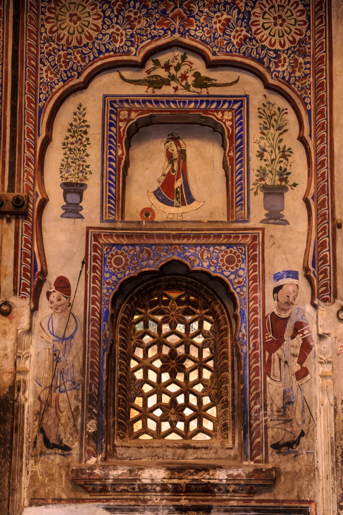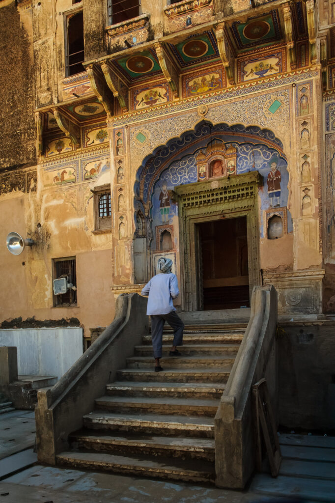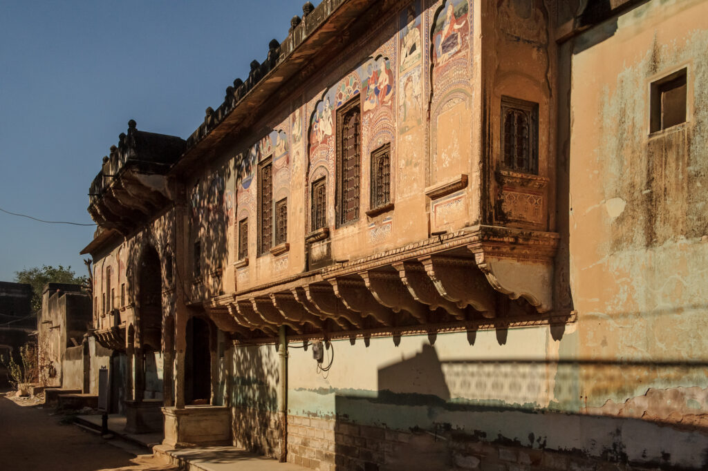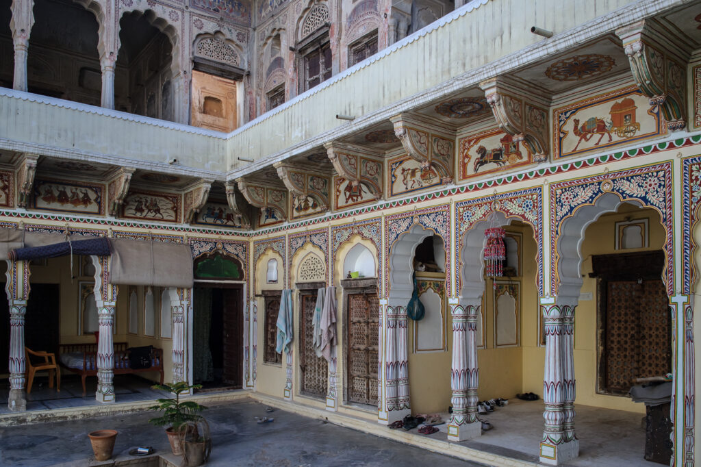 Bâties de grès rouge, ces villas emblématiques, appelées "havelis", sont célèbres pour les ornementations de leurs façades sculptées et leur raffinement. Ces demeures ont été construites à partir du XVe siècle par la noblesse locale. Nombre d'entre elles possèdent plusieurs étages, de larges balcons et de vastes pièces disposées autour d'une cour centrale où l'on vient échapper aux chaleurs accablantes du Rajasthan