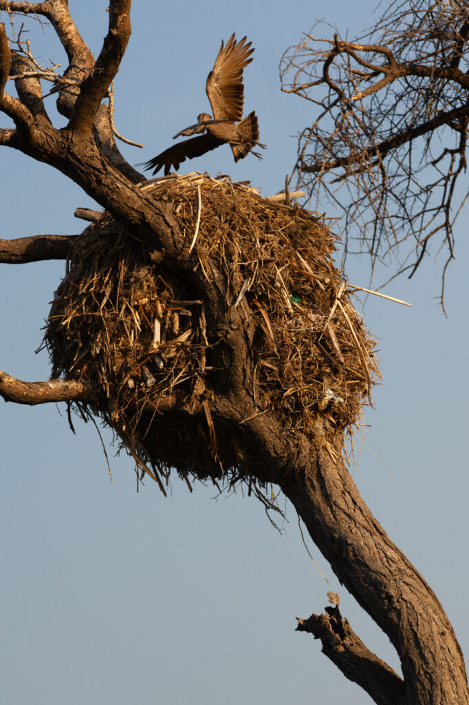 L’Ombrette africaine est connue pour son énorme nid fait avec des rameaux de bois dans la fourche d’un arbre.