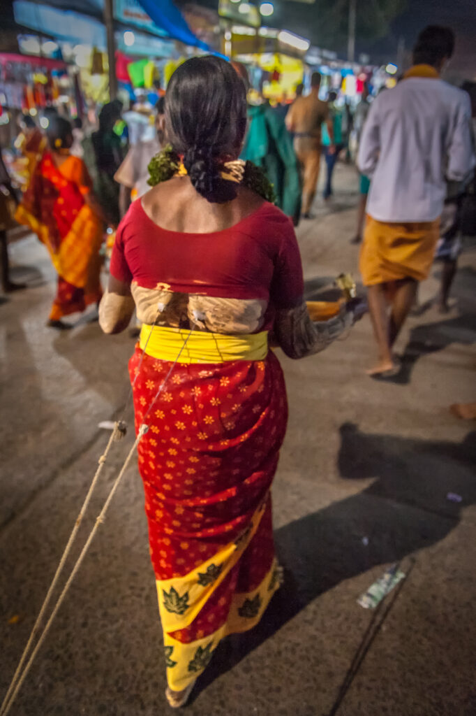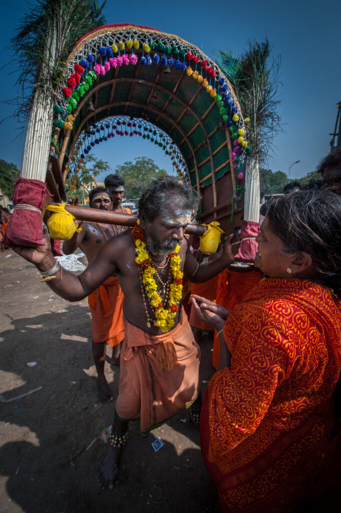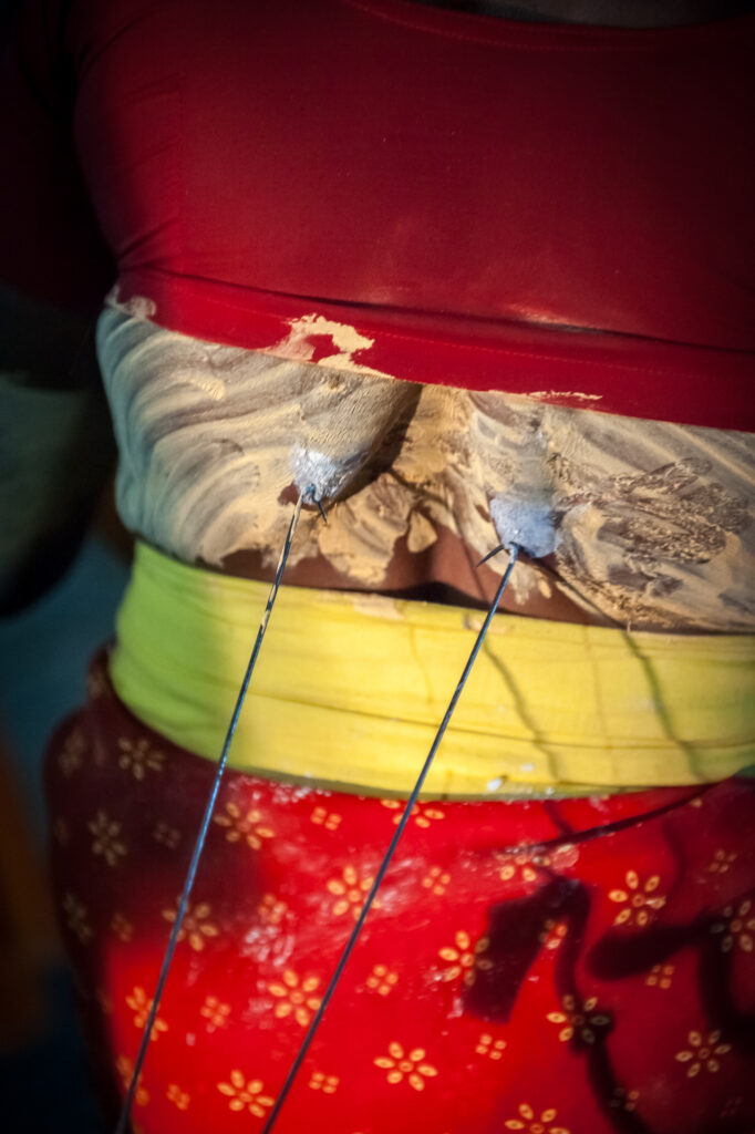 Perçage Corporel : De nombreux dévots se percent la peau, la langue ou les joues avec des crochets ou des aiguilles comme forme de pénitence. Ceci est considéré comme un sacrifice personnel pour montrer sa dévotion et chercher la purification.