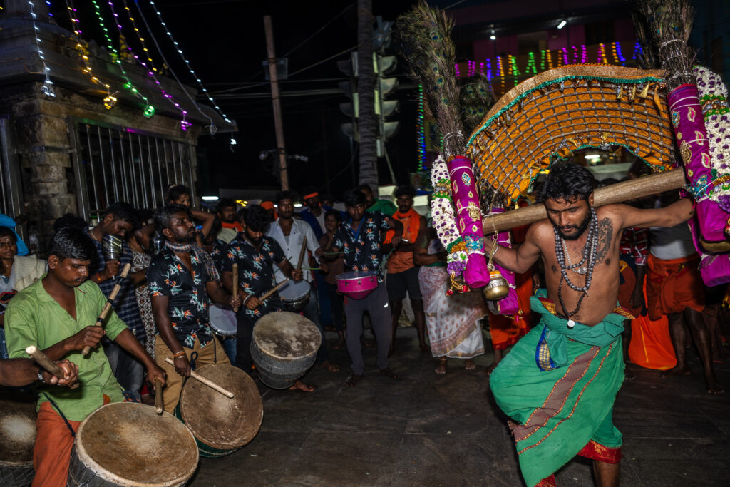 Le Kavadi Aattam danse du fardeau) est un sacrifice et une offrande cérémoniels pratiqués par les fidèles lors du culte de Murugan, le dieu hindou de la guerre. Il constitue un élément central du festival de Thaipusam et met l'accent sur le remboursement d'une dette spirituelle. Le Kavadi (« fardeau ») est un fardeau physique que le fidèle porte pour implorer l'aide de Murugan, généralement pour un être cher ayant besoin de guérison, ou pour s'acquitter d'une dette spirituelle. Les fidèles défilent et dansent le long d'un chemin de pèlerinage en portant ces fardeaux.