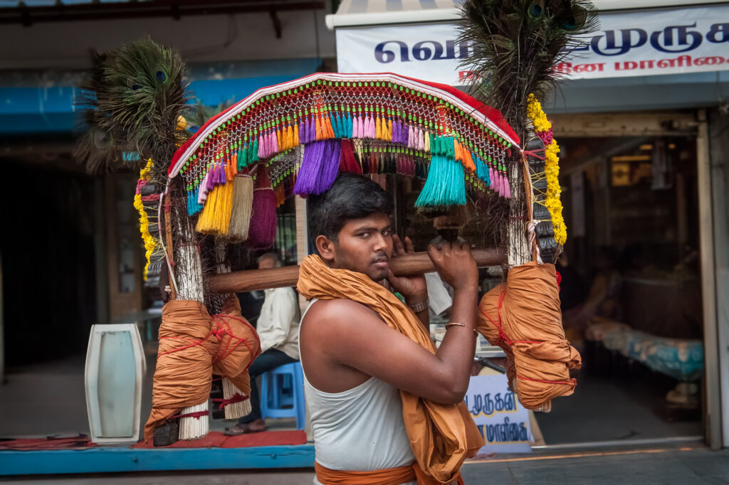 Thaipusam, une fête propice dédiée au dieu Murugan, symbolisant la dévotion, la foi et le sacrifice . Les fidèles témoignent d'une ferveur et d'une force inébranlables à travers leurs processions et le port de kavadis.