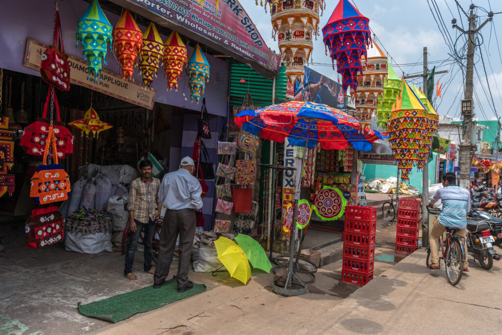 Pipili est une ville du district de Puri dans l'État indien d'Odisha. elle est célèbre pour la conception de magnifiques objets artisanaux appliqués. C'est une ville d'artisans réputés pour leurs tissus colorés.