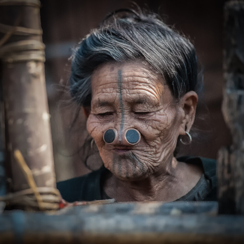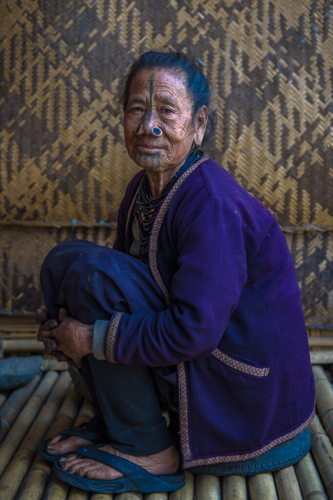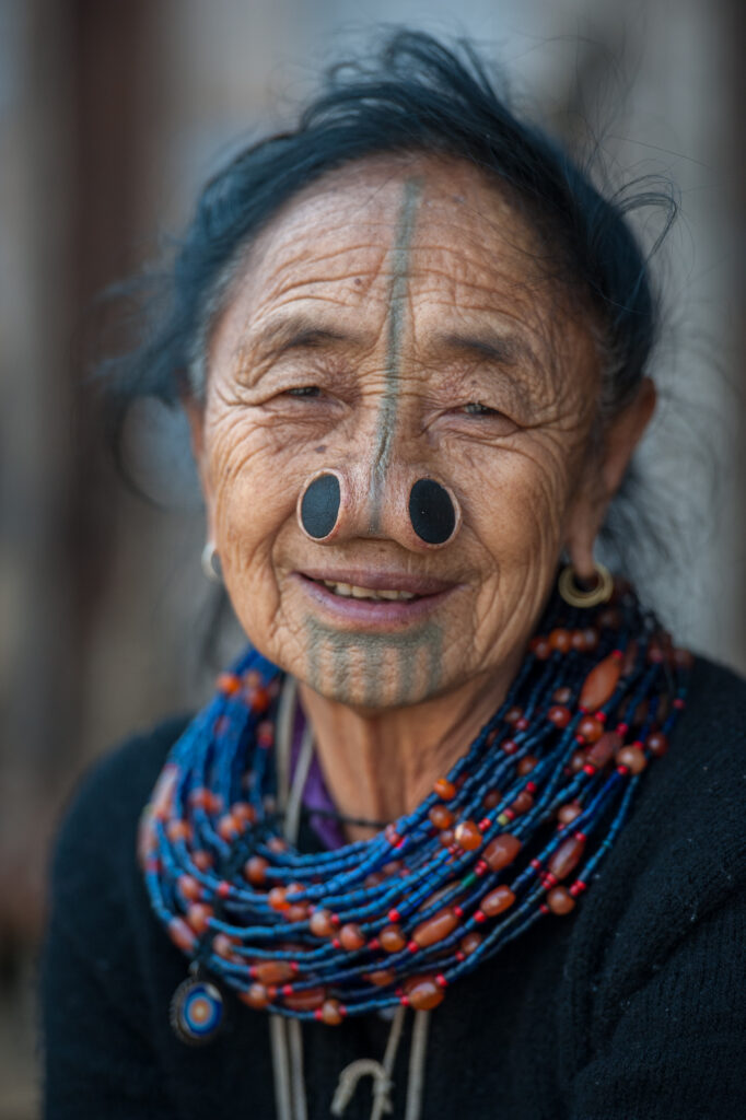 Les femmes ont pour coutume d'orner leurs narines avec des disques de rotin noirci. On appelle cela un yabinghulo. Cette pratique serait née quand une femme apatani ne voulut plus paraître attirante aux hommes des tribus environnantes. Les habits apatani sont élaborés et colorés. Les tatouages sont très populaires.